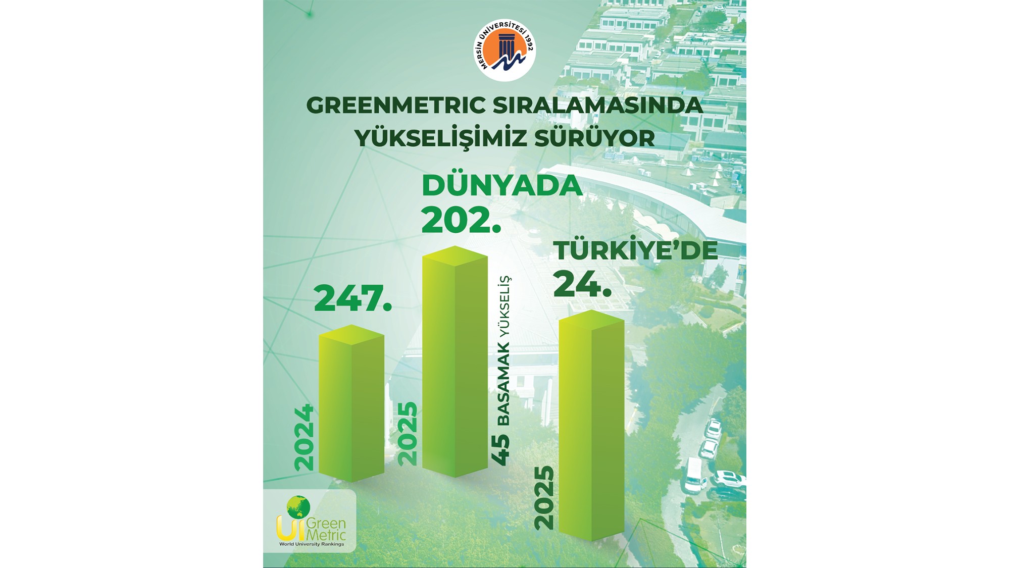 Üniversitemizden Sürdürülebilirlikte Yeni Zirve: GreenMetric 2025’te Yükselişimiz Güçlenerek Devam Ediyor