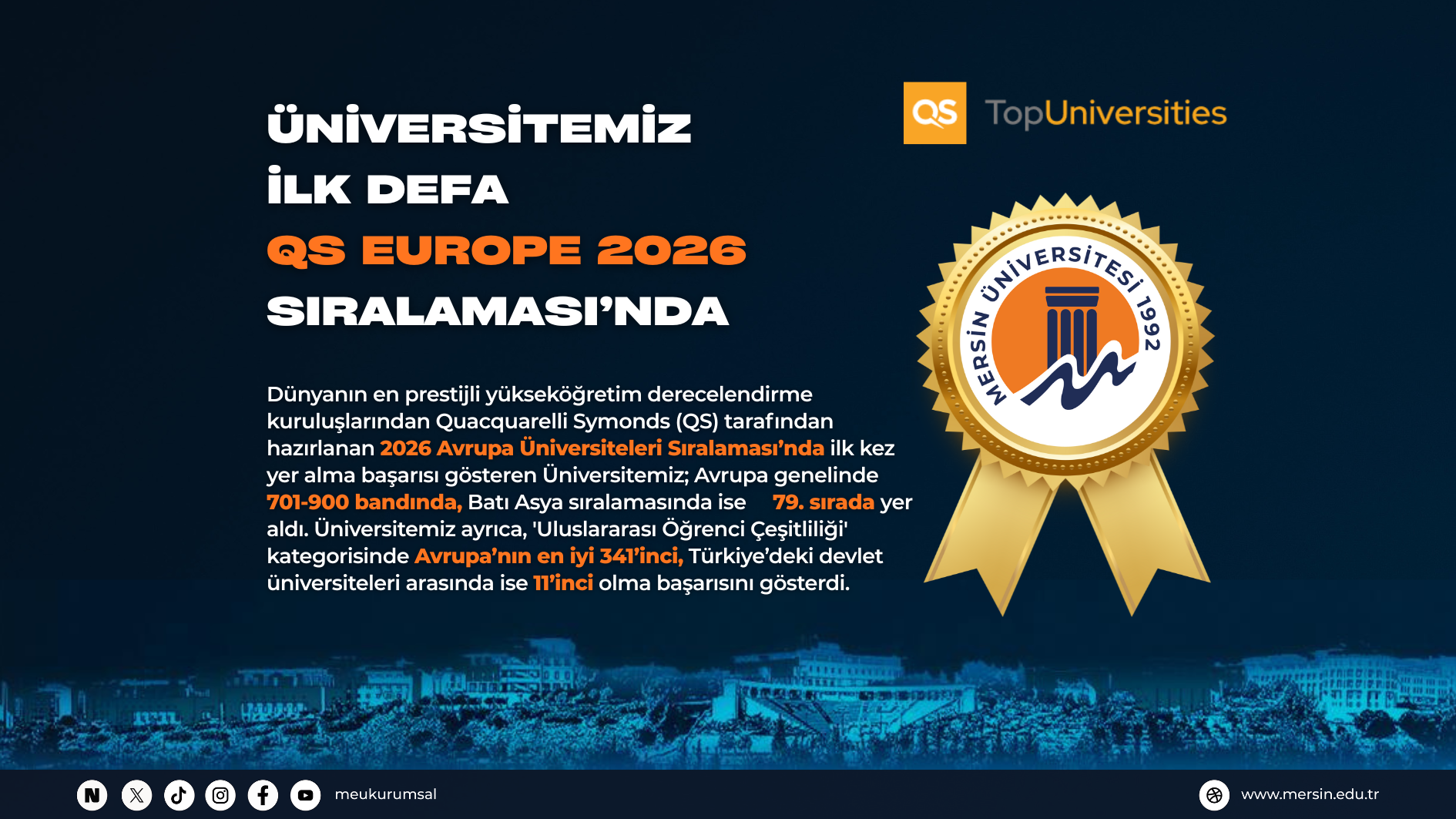Üniversitemiz, çevre odaklı yönetim anlayışı ve yeşil dönüşüm çalışmalarıyla uluslararası alanda yükselişini sürdürüyor. 105 ülkeden 1745 üniversitenin değerlendirildiği GreenMetric 2025 Dünya Sürdürülebilir Üniversi